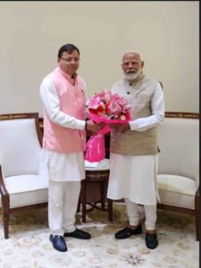 मुख्यमंत्री पुष्कर सिंह धामी ने मंगलवार को नई दिल्ली में प्रधानमंत्री नरेंद्र मोदी से भेंट कर उन्हें तीसरी बार देश के प्रधानमंत्री का दायित्व संभालने पर हार्दिक शुभकामनाएं दी। उन्होंने विश्वास व्यक्त किया कि प्रधानमंत्री श्री मोदी के कुशल नेतृत्व में देश समग्र विकास के नए आयाम प्राप्त कर सम्पूर्ण विश्व में सफलता के नए कीर्तिमान स्थापित करने में सफल होगा। मुख्यमंत्री ने इस अवसर पर प्रधानमंत्री श्री नरेंद्र मोदी को महासू मंदिर की प्रतिकृति भेंट की।