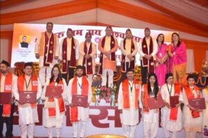 मुख्यमंत्री ने कहा कि प्रधानमंत्री नरेन्द्र मोदी जी के नेतृत्व में संपूर्ण विश्व न केवल हमारी शक्ति और ज्ञान परंपरा से परिचित हो रहा है बल्कि प्रत्येक क्षेत्र में हमारा अनुसरण करने को भी तत्पर है। आज पूरा विश्व हमारे युवाओं के सामर्थ्य से लाभान्वित होने के लिए लालायित है।आज का नया भारत अपनी प्राचीन शैक्षणिक व सांस्कृतिक पद्धति को केंद्र में रखते हुए नए बदलावों की ओर अग्रसर है। हम आजादी के अमृत काल में प्रवेश कर गये हैं। हम सबको प्रण करना होगा कि हम अपने कार्यों से देश और समाज के लिए अहम योगदान दें।